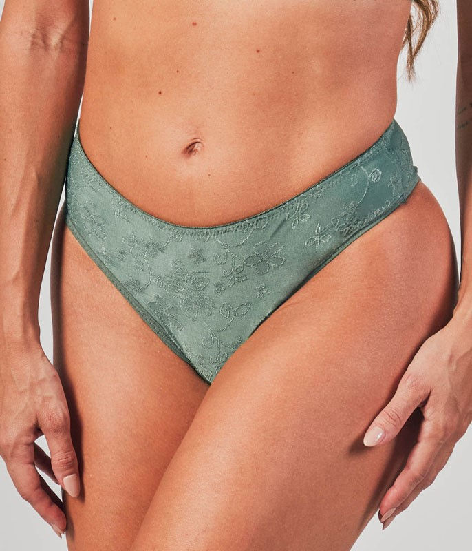 Calcinha modelagem biquíni com laterais médias e cintura baixa.
